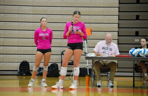 Brighton’s junior middle blocker, Cynthia Ockerman, gave a touching speech before the game about her cancer journey with Wilms tumor, a type two kidney cancer that she had as a young child, and the general importance of Pink Week.
